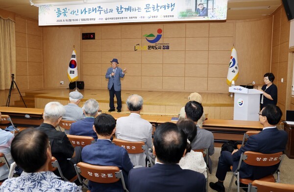 장흥군은 15일 열린 ‘제588회 장흥학당 연찬회’에서 나태주 시인을 초청해 문학강연과 사인회를 개최했다고 밝혔다.