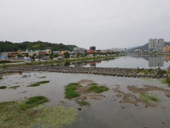 하천유지수 안 보내 수초 만발, 물 흐름 없이 썩어가는 탐진강